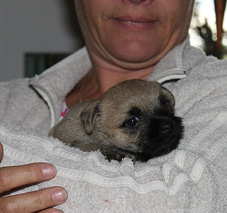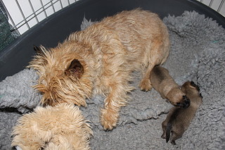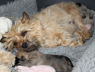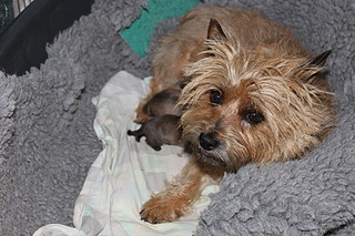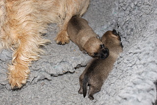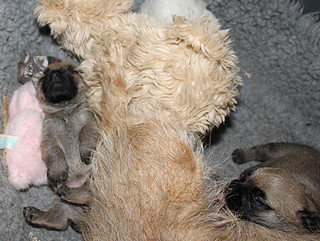 Første hvalp er født og hun fandt lige til patten med det samme